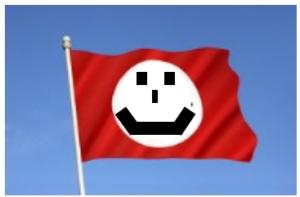 De gauche à droite : 1- Un étendard « smiley » qui fait référence à un ancien parti du même nom. 2- Un étendard « Jeanne, Au Secours », sponsorisé par une marque célèbre de poêle à bois