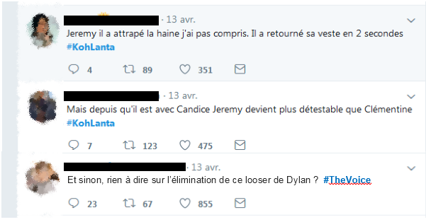 Selon le sociologue strasbourgeois Herman Schteflor, cette dérive de la conversation est un moyen de se libérer de notre vie « merdique » en s’en prenant à d’autres. « Qui n’a jamais rêvé de s’enflammer sur quelqu’un qu’on ne connait pas ? », nous avoue t-il. Et dans ce rôle, Koh Lanta est un excellent moyen de défoulement social, qui mêle subtilité et instantanéité. Et quand les échanges directs se terminent, les conversations se poursuivent même sur twitter, comme ci-dessous.