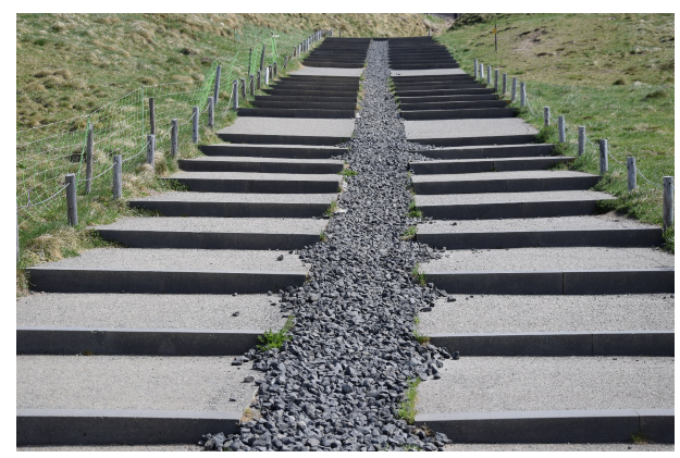 Dressées ici comme un défi des héros grecs, les marches modernes du Puy de Dôme annoncent l’arrivée.