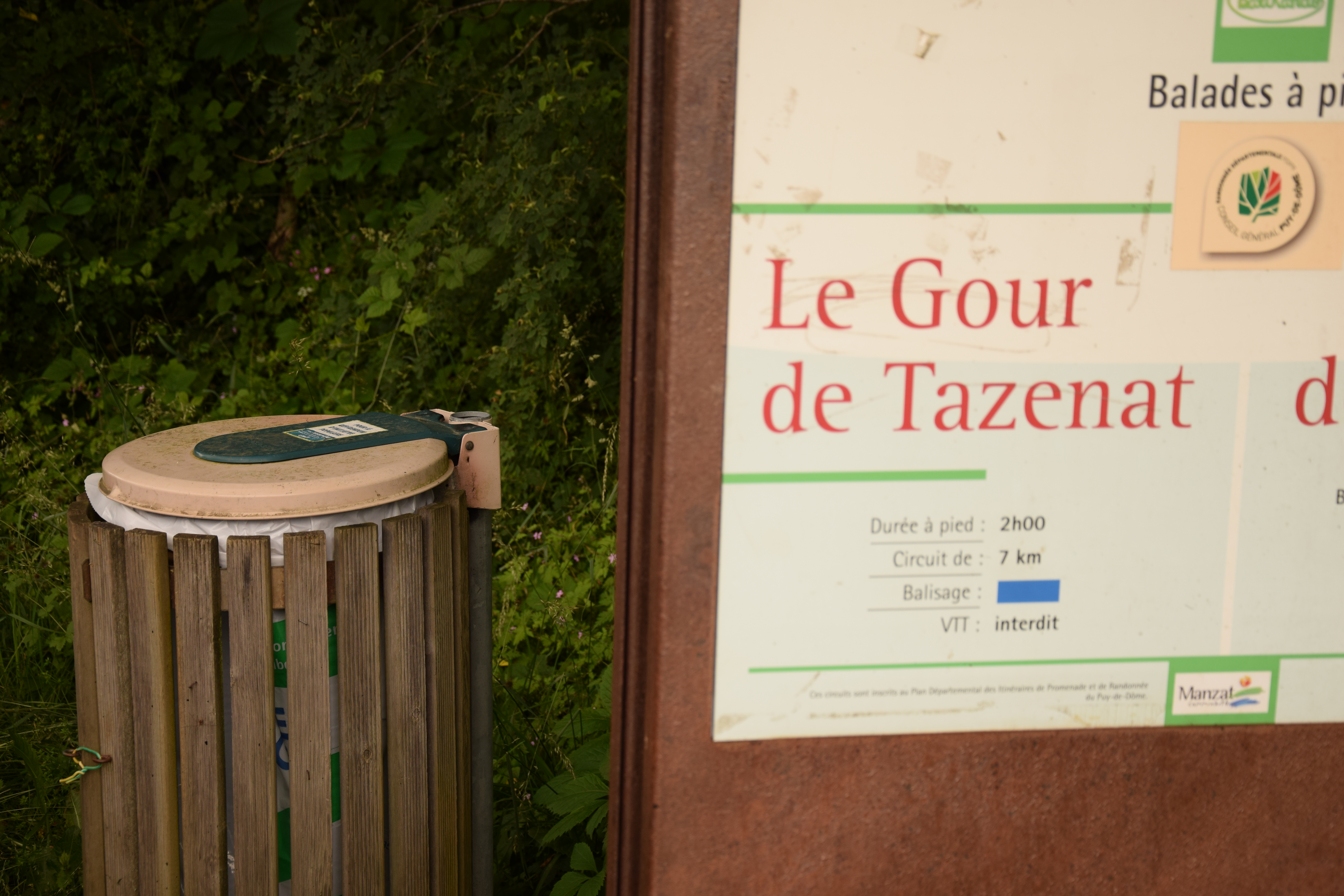 Le tracteur est impossible à doubler, seuls quelques fous du volant tentent leur chance dans des virages sans visibilité. Mais soudain, un panneau indique le Gour de Tazenat à droite tandis que l’engin file tout droit. La délivrance ! pensez-nous. Mais non, car après seulement 50 mètres nous nous retrouvons face à une route barrée. La malédiction continue.