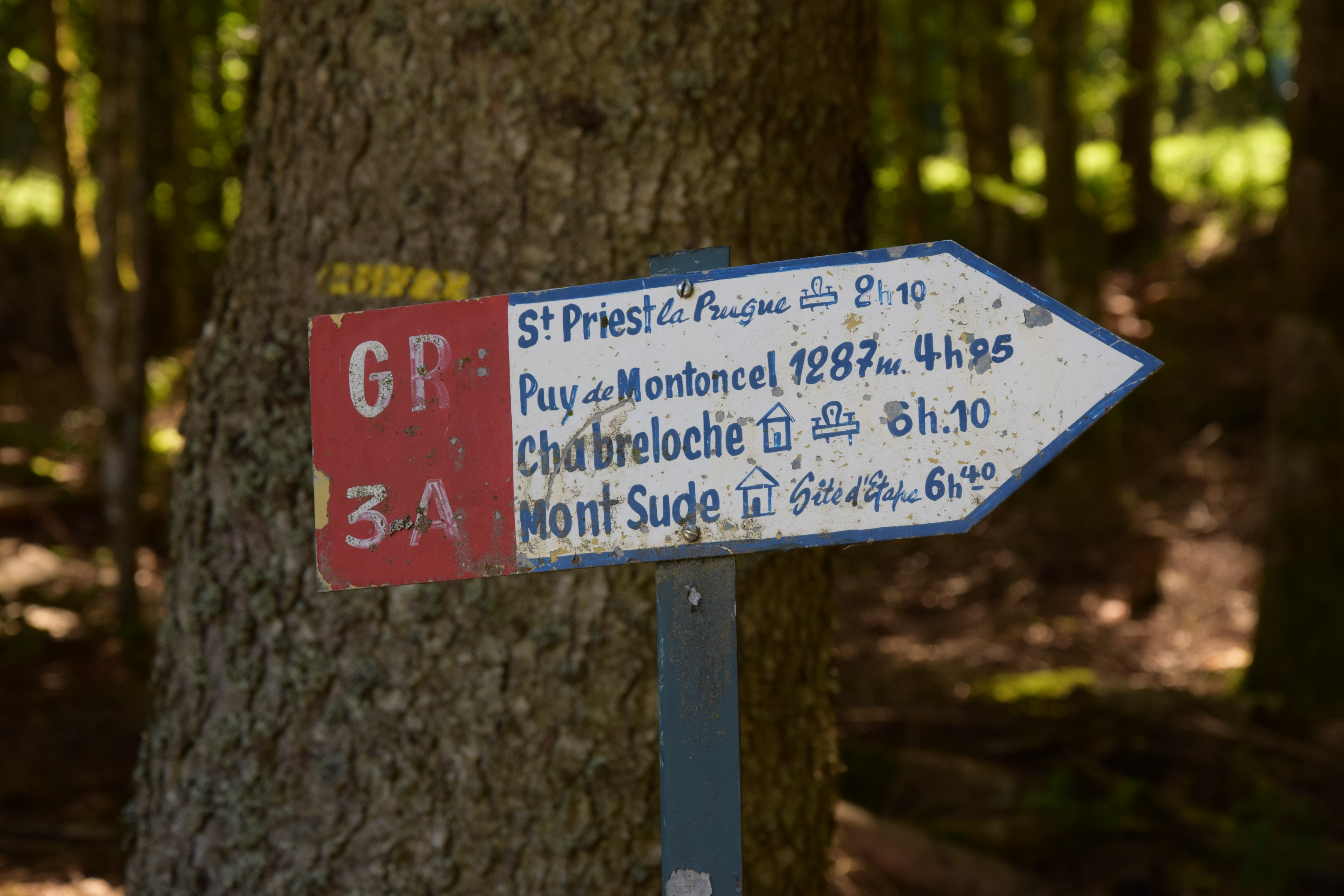 La route que j’emprunte suit également un GR. Des panneaux dernier cri m’indiquent même les cités voisines et les montagnes du Bourbonnais rural.