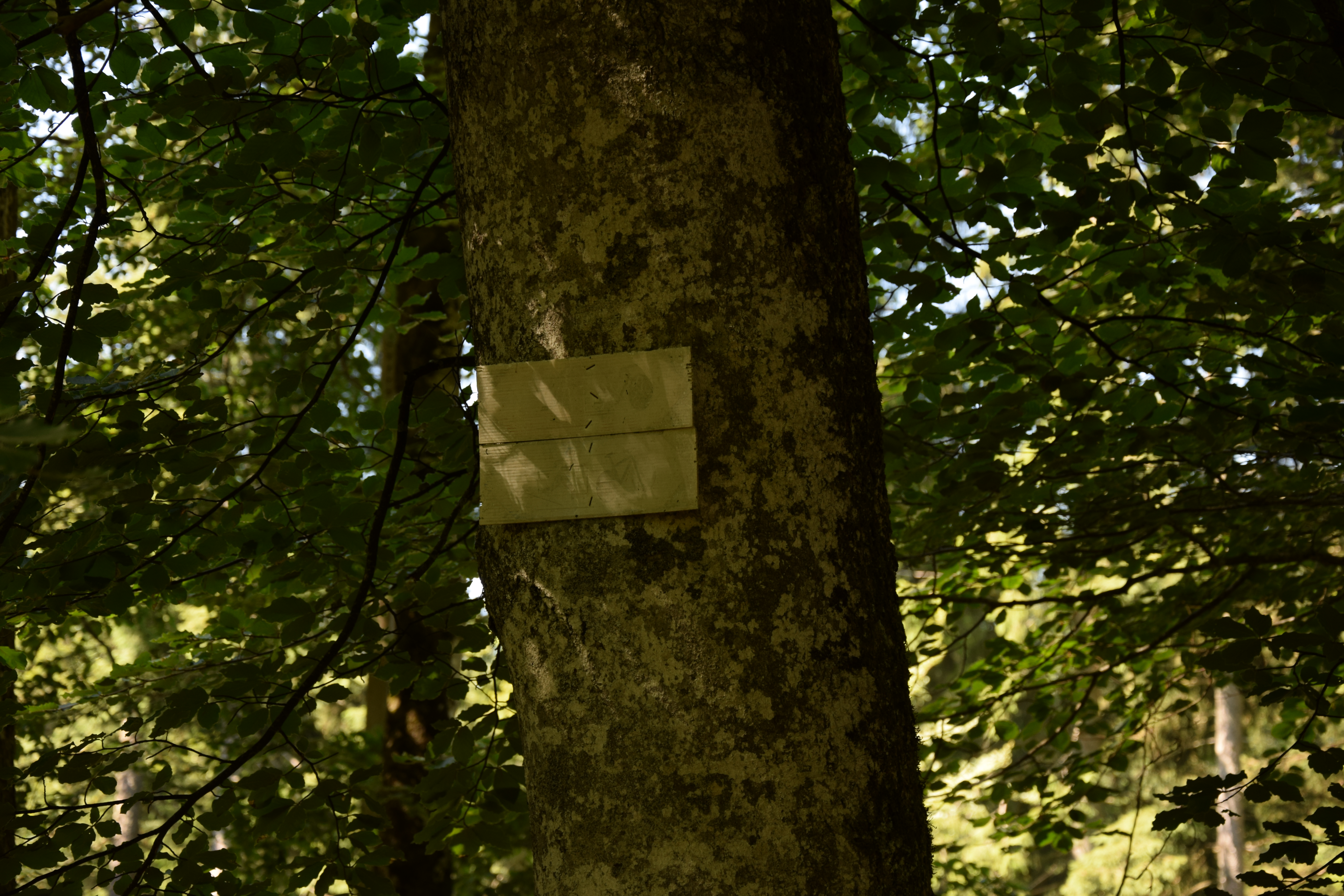 On dit que depuis plusieurs siècles, le Dahu hante les bois de la Loge. Cela est vrai, il est ici, tout prêt… Un panneau m’annonce sa présence.