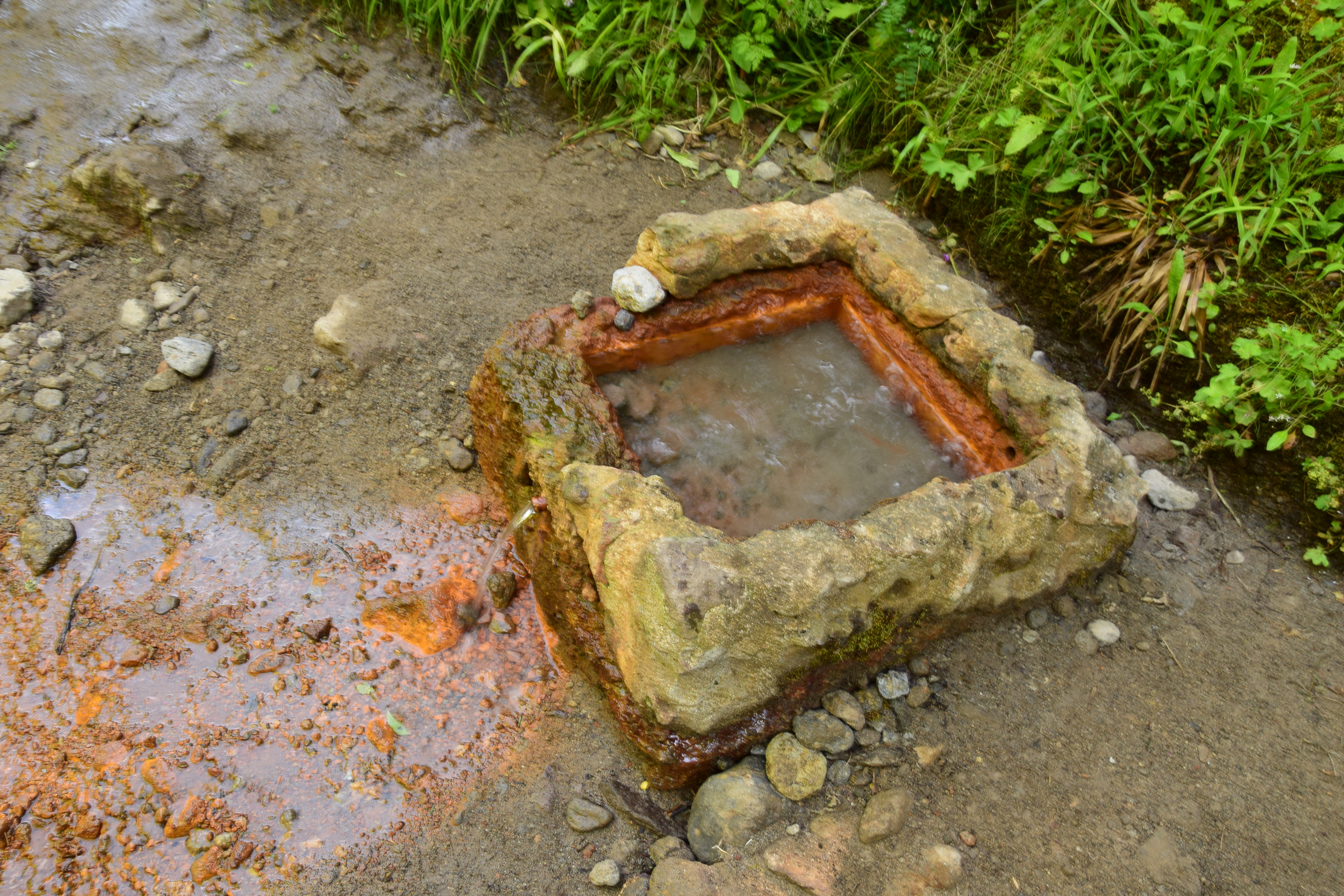 La source d’eau ferrugineuse de Chaudefour ! Superbe ! Elle me fait un peu penser à un vestige de Pompeï, mais après tout, c’est aussi une région volcanique ici. Nous avons testé et approuvé l’eau riche en fer. Je suis prêt à jouer dans Robocop V, une version mutante et rouillée du super héros.