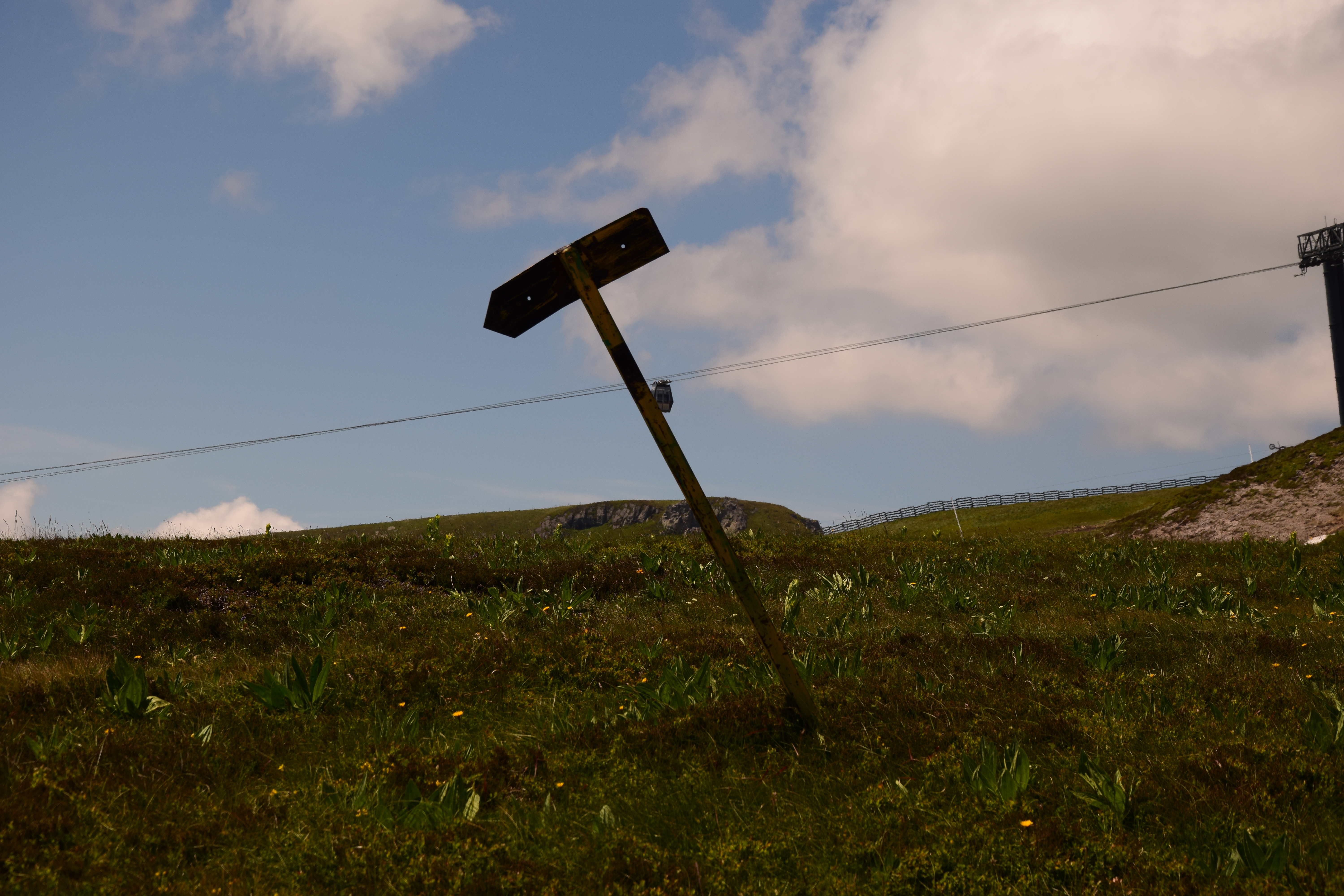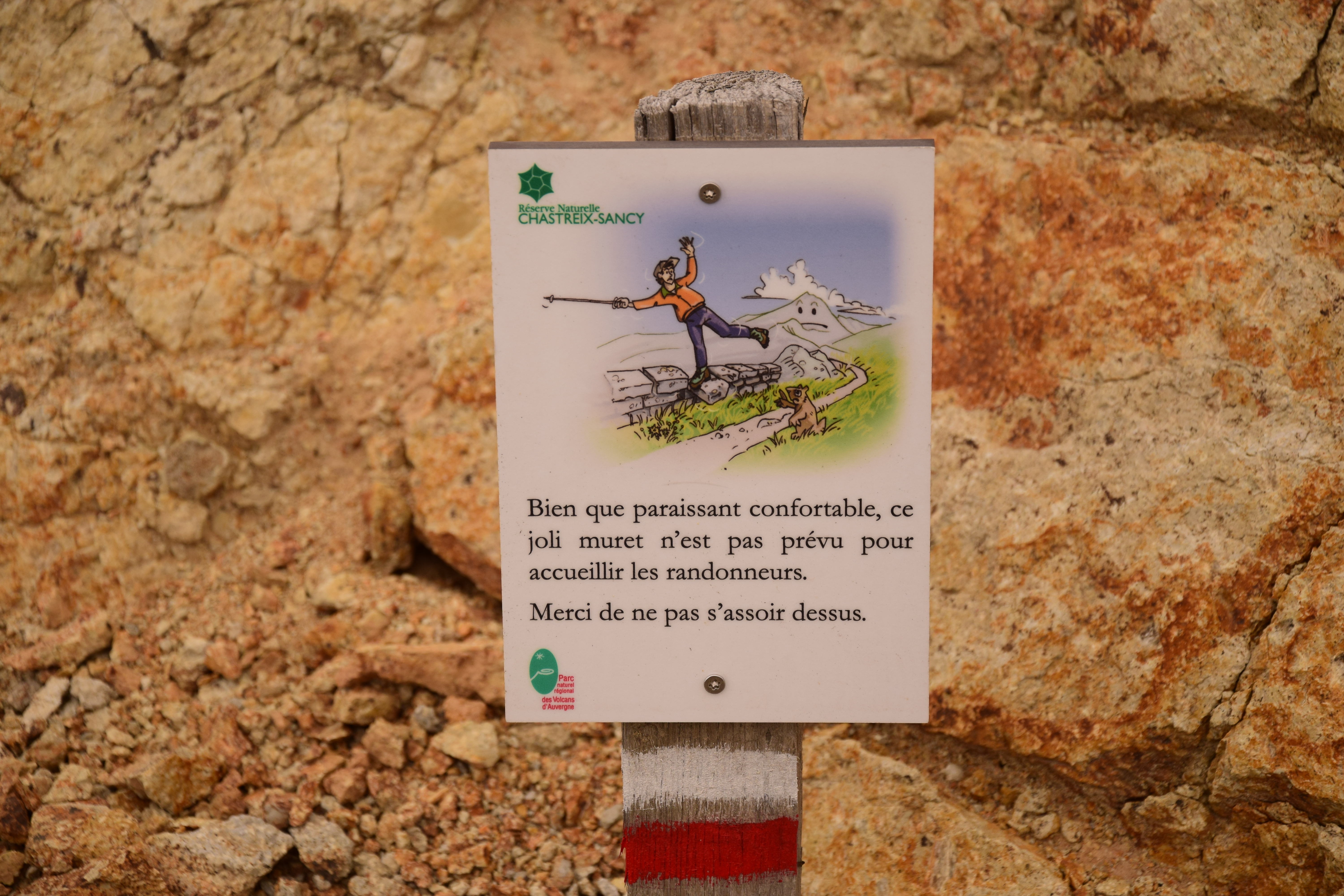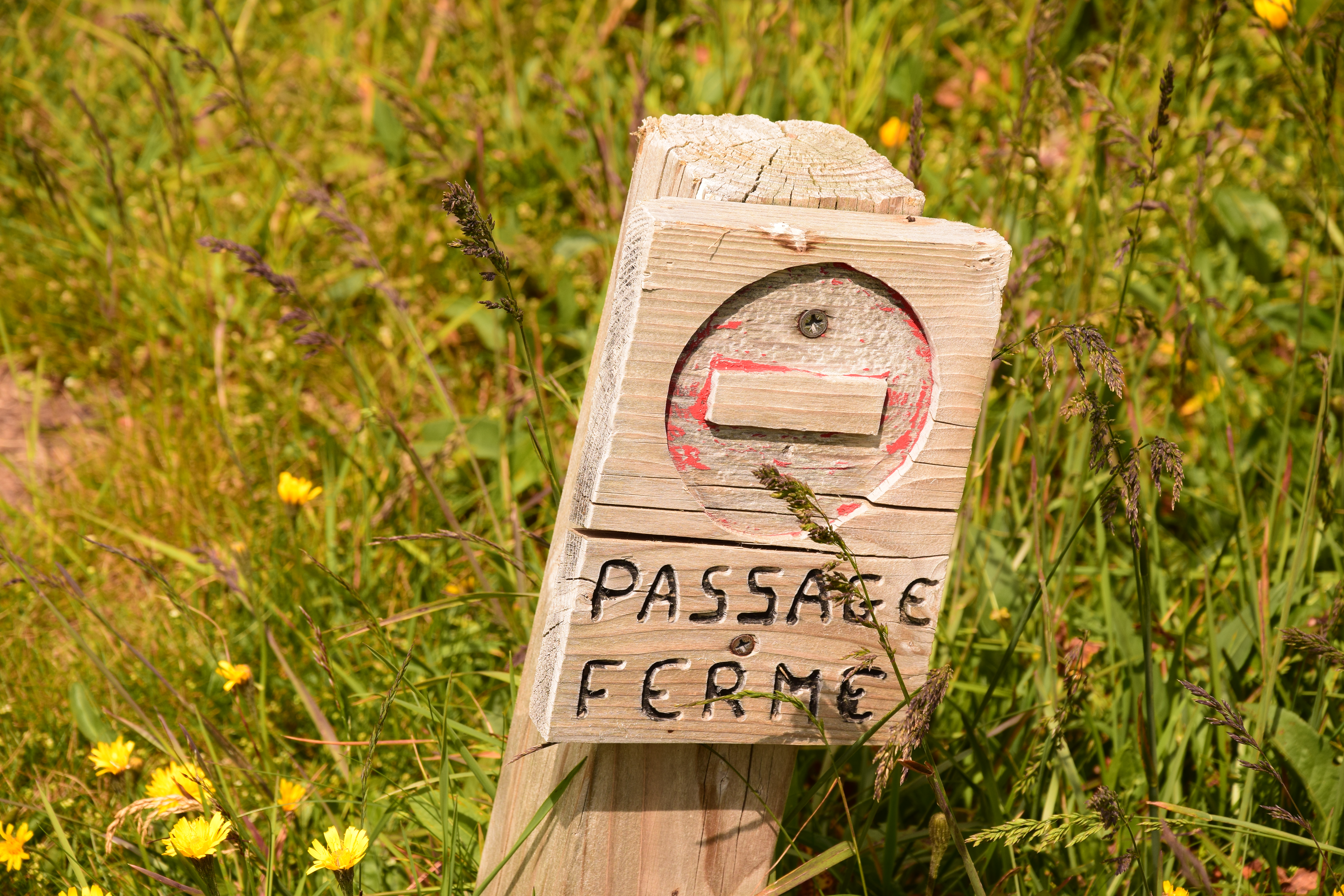 Le syndrome de l’interdit venu de la Loge des Gardes semble avoir frappé cette contrée, c’est au moins le dixième panneau que l’on croise (sauf que celui-ci est plus vintage, nous lui attribuons la note de 7/10). Quoi ? C’est utile pour ne pas détruire la biodiversité ? Si on s’arrête à ce genre de détail…