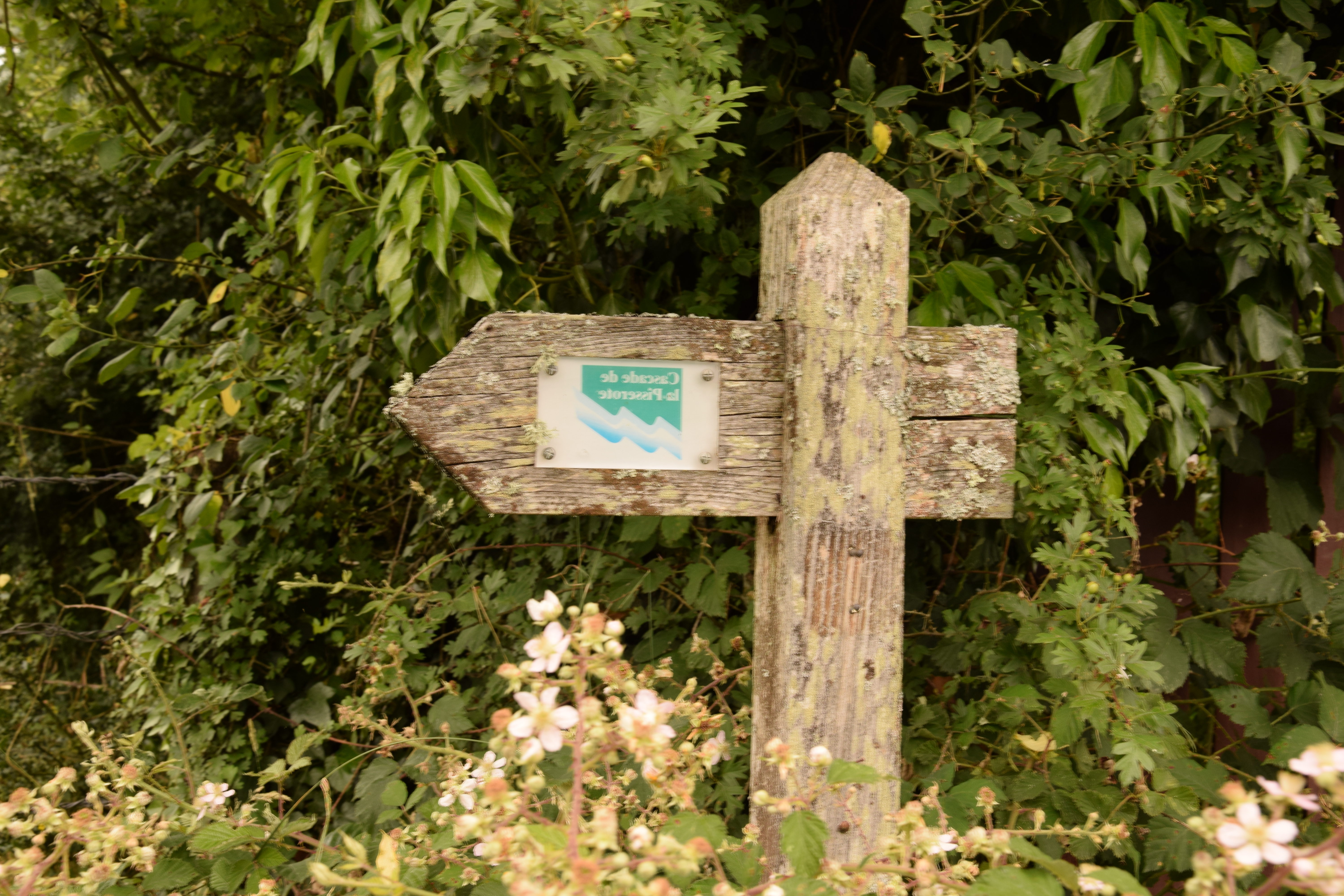 Enfin j’ai décidé de regarder la carte. L’amie qui m’accompagne n’a rien osé dire. Mais promis, nous n’allons plus nous perdre ! Nous prenons désormais la bonne route (celle qui était à l’opposée de la pancarte « Cascade de la Pisserotte », on est cohérent dans le Bourbonnais).