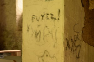 Tandis que l’orage gronde, nous retournons sur nos pas. Nous retrouvons des marqueurs indispensables qui nous rappellent que nous nous rapprochons de notre point de départ. Il ne manque plus qu’une brosse à chiotte en guise de pancarte.
