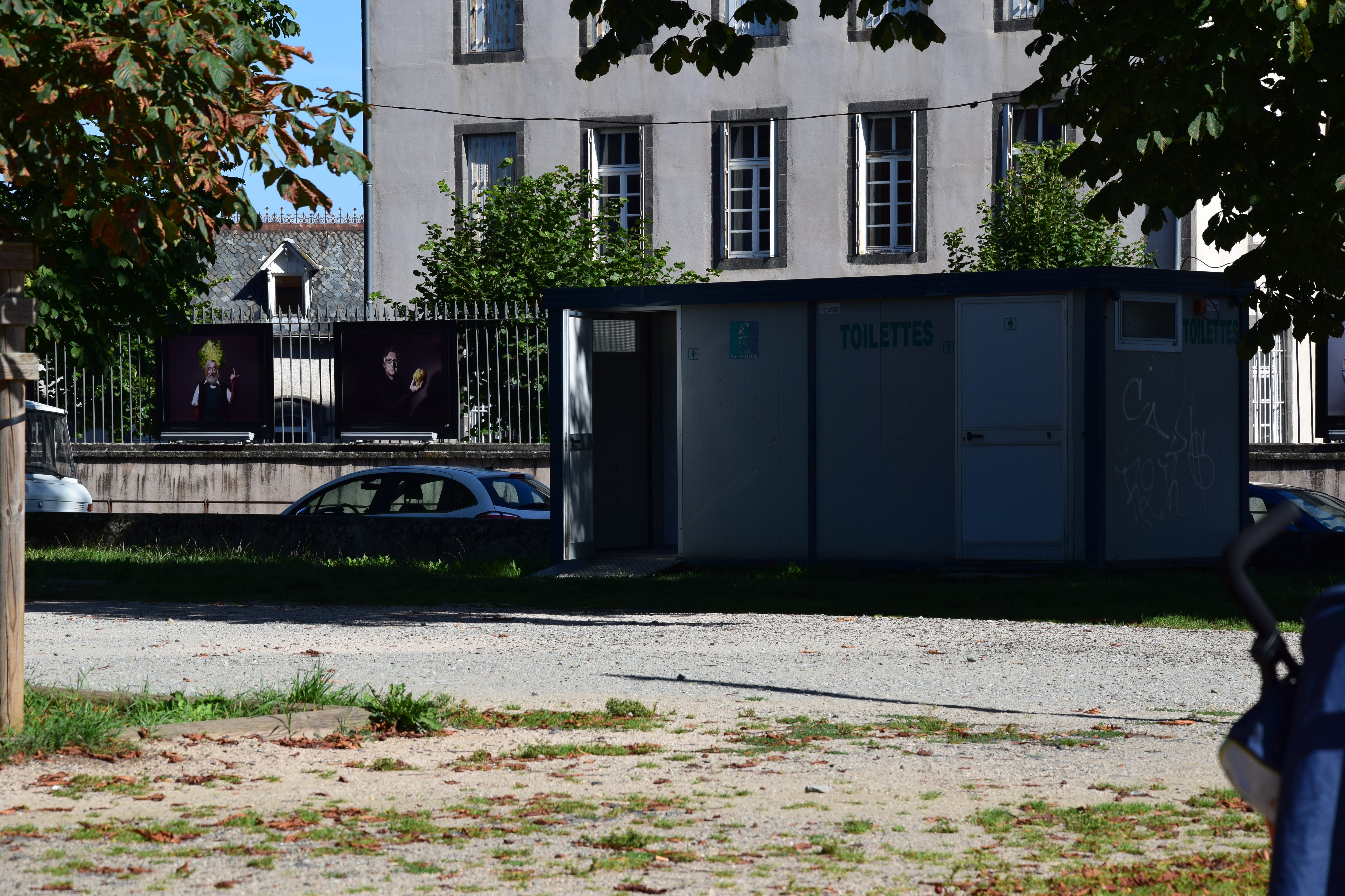 L’arrivée à Saint-Flour nous laisse un peu perplexe. Nous pensions trouver des bâtiments anciens remontant même au Moyen-Age. Il y a juste ces toilettes publiques. Consolation, la place, en terre sèche et en herbe « Attila », qui ne repousse pas, a un charme certain.