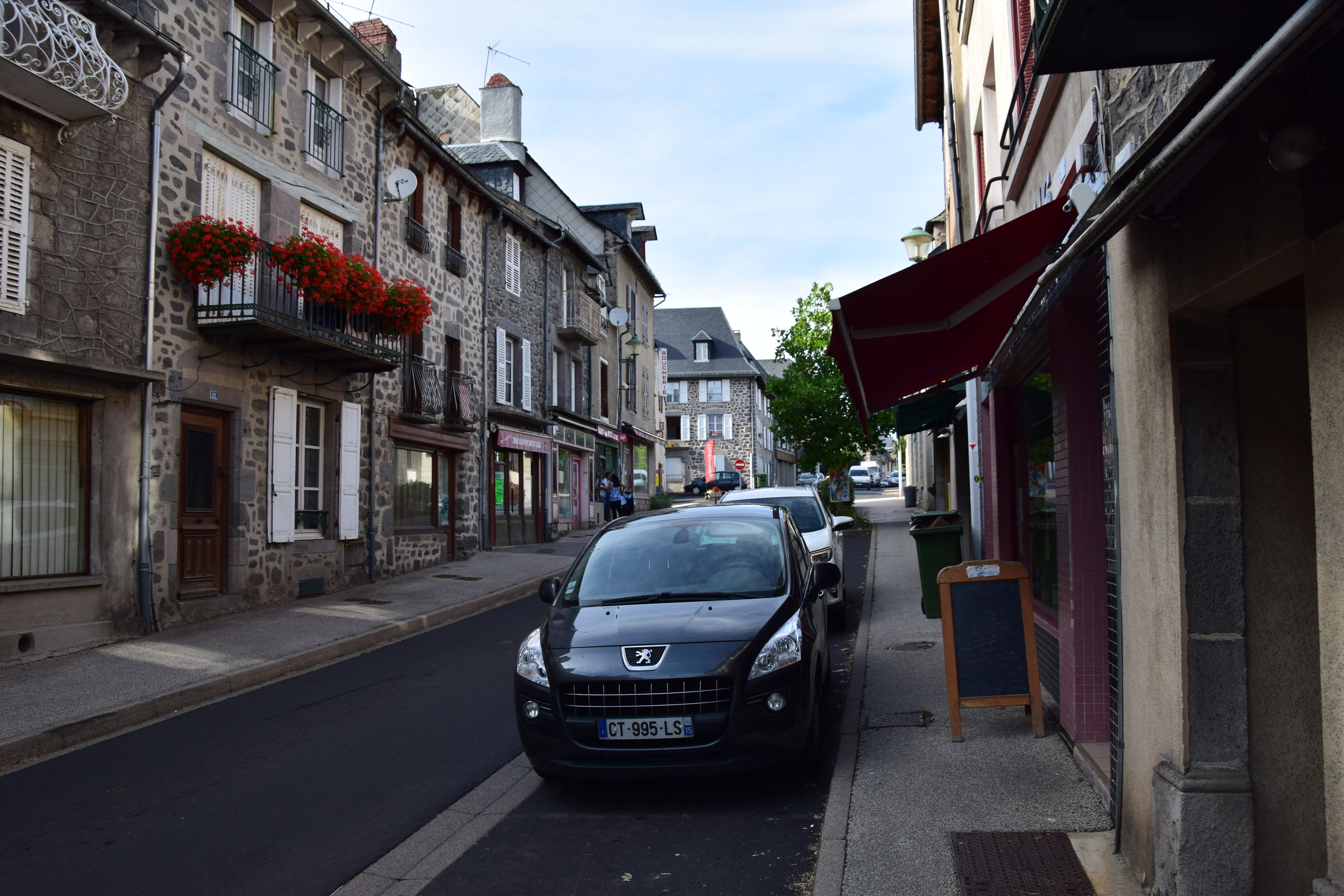 Peu avant de nous rendre à la cascade des Veyrines, nous nous arrêtons à Allanche, un beau village, capitale du Cézallier. Si la bourgade tend à se vider après la fête des estives, elle garde toute l’année une activité dynamique (centres commerciaux, casinos, discothèques) qui pourraient presque faire penser à Las Vegas. On a heureusement évité le pire.