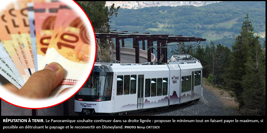 Lancé en 2012, la voie ferrée électrifiée du panoramique des Dômes est parvenue en quelques années à donner le second souffle espéré au Puy de Dôme : destruction du paysage et des panoramas, afflux de surtourisme au sommet, prix élevés et pannes à répétitions. Mais ces ingrédients ancrés depuis longtemps dans les habitudes même des locaux ne font plus recette. Il est temps désormais de passer à la vitesse supérieure, selon le Conseil départemental, en accord avec la société d’exploitation. Désormais, le panoramique a décidé de réhausser ses tarifs à 45€ l’Aller-retour adultes comme enfant, en bondant au maximum les véhicules afin de s’assurer que le plus de personnes soient debouts. Enfin, la société Transdev Rail s’engage à un minimum de 27 pannes par jour, soit huit de plus qu’en ce moment.