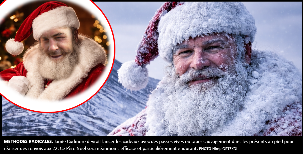 Jamie Cudmore coche toutes les cases du bon Père Noël. Il résiste au froid, en raison de son vécu canadien, mange bien, et sait dire régulièrement « oh oh oh ». L’homme est aussi endurant et efficace. Il pourra « passer » les cadeaux avec des sautées sur 15-20m ou parfois réaliser des renvois aux 22 mètres plus hasardeux. Les cheminées seront élargies avec des percussions dans l’avancée, et les feux éteints. Attention, ce Père Noël ne livrera pas gratuitement. Il faudra bien le nourrir, si possible avec des pommes de terre et du fromage, et au besoin quelques bouteilles. Jamie Cudmore à 274 361 km à réaliser ce soir, il lui faudra de l’énergie.