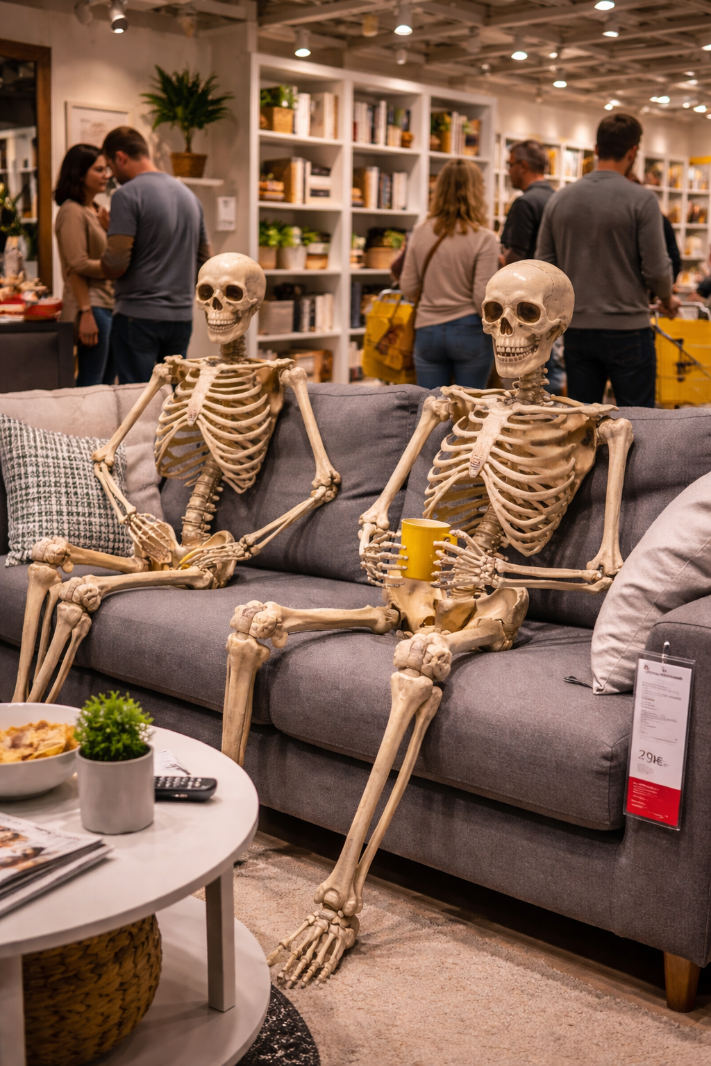 Ce matin, des employés du grand IKEA de Clermont-Ferrand ont retrouvé deux squelettes dans la partie 19 des mobiliers, assis sur un canapé d’une petite pièce d’exposition. « Ils se sont probablement perdus. Généralement, il faut plusieurs jours pour sortir du magasin et passer toutes les salles de ventes », a expliqué une vendeuse, visiblement confuse. Les clients étaient probablement assis ici depuis des années, probablement marqués par un vif épuisement et une perte de repère. Jusqu’ici, les autres visiteurs qui avaient pu les croiser avaient pensé qu’il s’agissait d’une décoration thématique.
